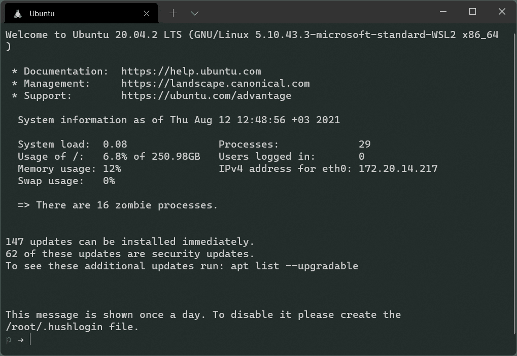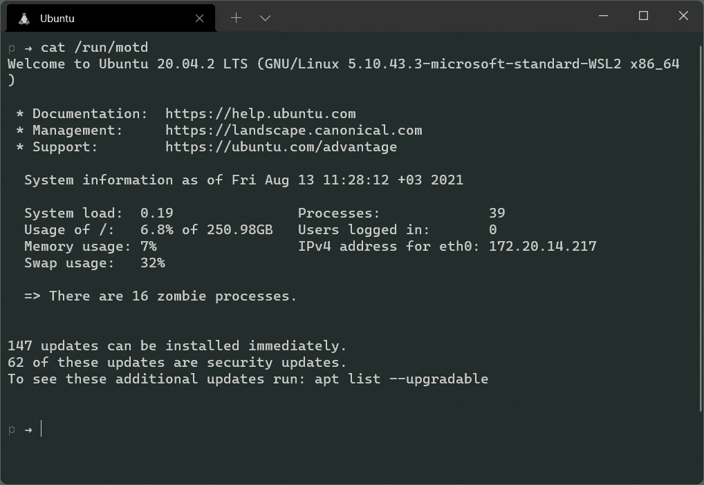 Content of the /run/motd file show on Window Terminal window